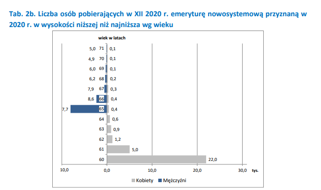 Procentowy udział takich osób zaczyna się stabilizować na poziomie kilkunastu procent. Są to głównie kobiety - podział osób na płeć i wiek w roku 2020 jest podobny do tego z 2019 roku, jaki przytoczyłem w poprzednim wpisie. Nadreprezentacja kobiet w całej grupie to częściowo skutek tego, że do 2014 roku tylko one były emerytkami nowego systemu. Jaka jest tego przyczyna, co wiemy o tej grupie? Według raportu ZUS jest to grupa, w której znaczna ilość osób nie ma ani jednej składki po 1998 roku, nie pracowała ponad 20 lat. Być może są to ofiary wypadków i chorób, przemian gospodarczych, osoby zakorzenione w starym systemie (to wyjaśnienia bardziej dotyczą panów) lub te, które porzuciły prace, by poświęcić czas wyłącznie na dom i rodzinę (przypadek pań). Taką tezę zdaje się potwierdzać publikacja IBS "Czy zwiększenie dzietności w Polsce jest możliwe?"Statystyki kobiet bezrobotnych i nie szukających pracy zdają się potwierdzać hipotezę o poświęceniu dla rodziny. Około 15% kobiet po urodzeniu dziecka pozostaje bezrobotna z wyboru. Liczność tej grupy w młodym wieku sugeruje, że to zjawisko może się utrwalić, nie jest przejściowe. Kobiety po raz kolejny okazują się być grupą trudną do analizy, zróżnicowaną, zagrożoną ubóstwem na emeryturze.